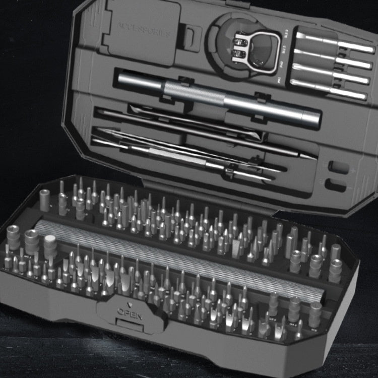 Accessories: electric handle * 1, manual handle * 1, suction cup * 1, short crowbar * 1, metal crowbar * 1, tweezers * 1, hose extension rod * 1, plastic length crowbar * 1, thin pry sheet * 4, bit * 140, addition and subtraction magnetic area * 1