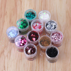 A total of 12 boxes of different human sequins were obtained. The 12 boxes are a mixture of 1mm, 2mm and 3mm star-shaped hexagons, which are very suitable for body, face and hair makeup. Let yourself be inspired to create stunning holiday makeup or everyday looks.